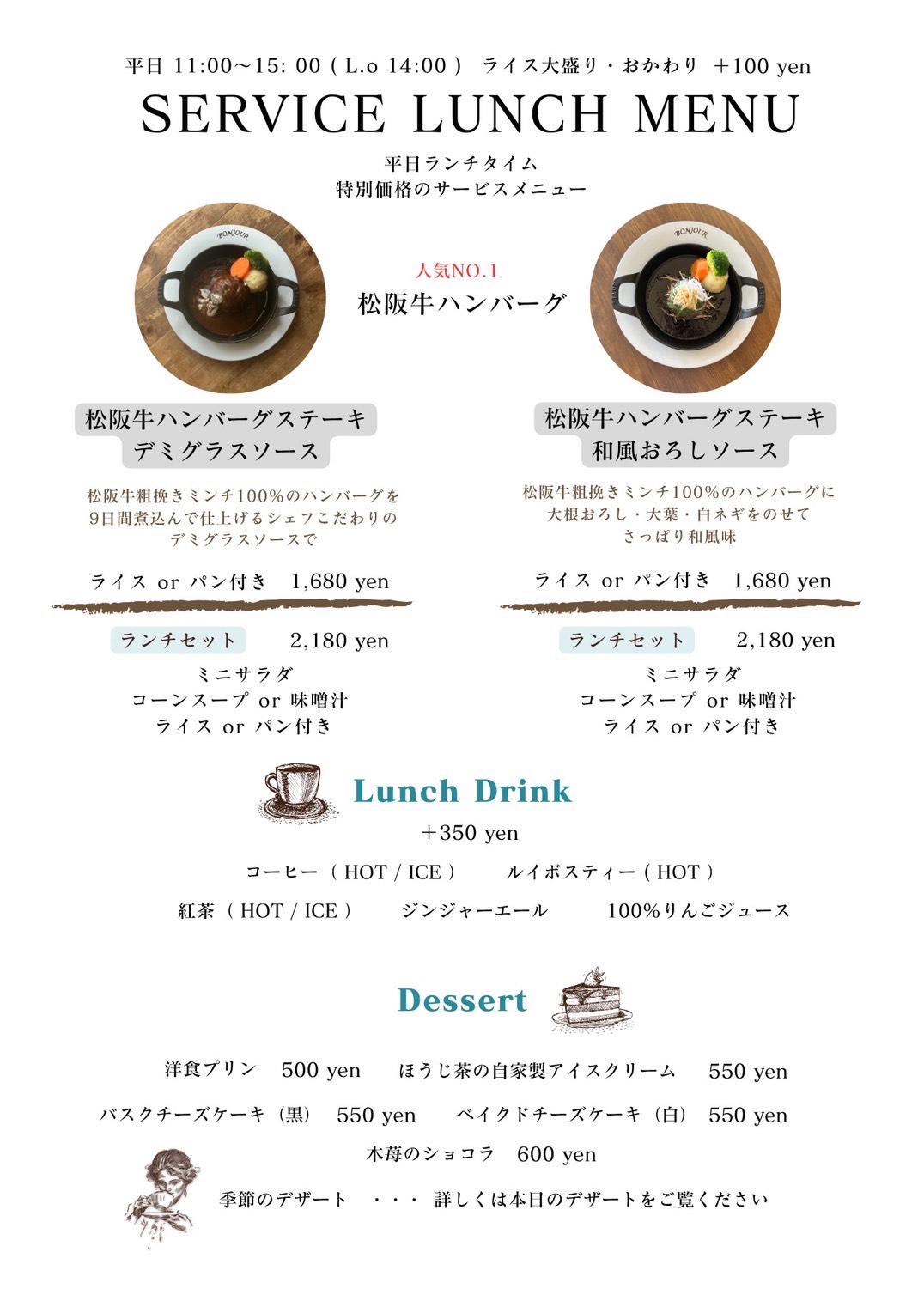 最初に着手したのは、メニューの断捨離、いわゆる“絞り込み”です。これまでは洋食店としての幅広さを売りに、多種多様な料理を提供してきましたが、主力である松阪牛ハンバーグを中心とした構成へと思い切って整理しました。